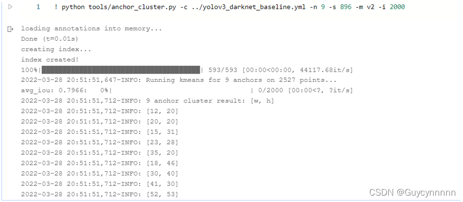 ! python tools/anchor_cluster.py -c ../yolov3_darknet_baseline.yml -n 9 -s 896 -m v2 -i 2000