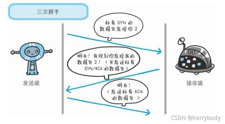 第三次握手:发送端向接收端发送握手请求,表示连接建立成功