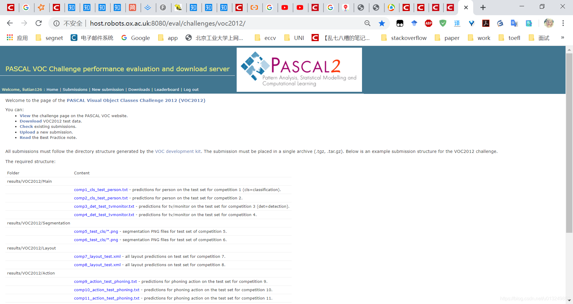 2.找到你要参赛的名字,比如我选择了第二行的2012比赛,对应的也是PASCAL VOC2012数据库的图像。