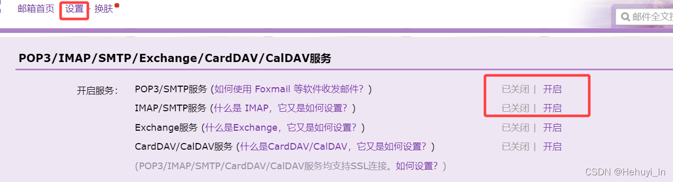 进入QQ 邮箱的主界面→设置→账户,开启“POP3/SMTP服务”和“IMAP/SMTP 服务”。