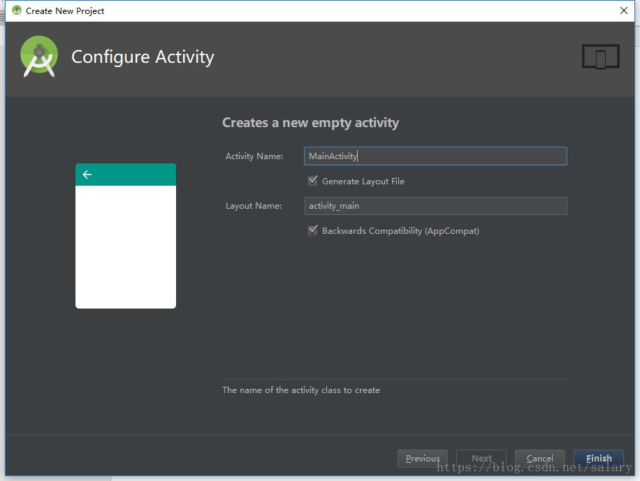 点击Next,输入Activity的名称,布局文件的名称,如下图所示: