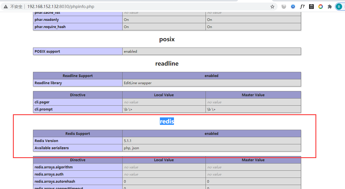 宿主机IP地址:8030/phpinfo.php;其中直接的扩展redis已成功安装