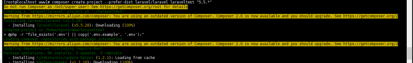 第四步: 运行laravel框架测试lnmp环境