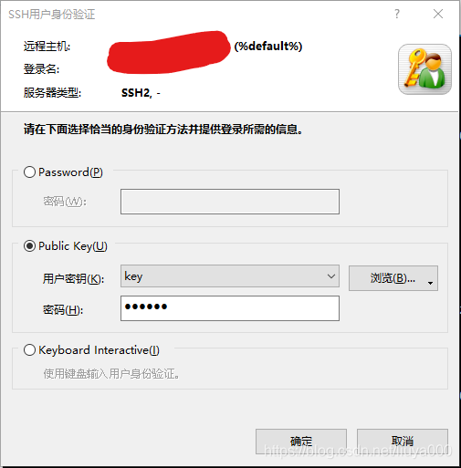 身份验证信息选择Public Key,选择对应密钥,填入密码(Xshell生成公钥时设置的密码)