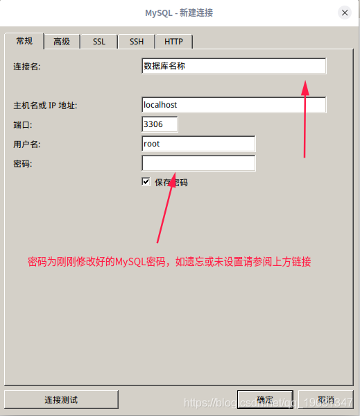 双击刚刚创建的数据库,连接成功会变成绿色,且有子级结构。未连接成功会提示错误信息,请将错误信息直接复制,自行百度,有很多的解决办法(我遇到的问题原因就是上方的密码问题,多么痛的领悟。。。)