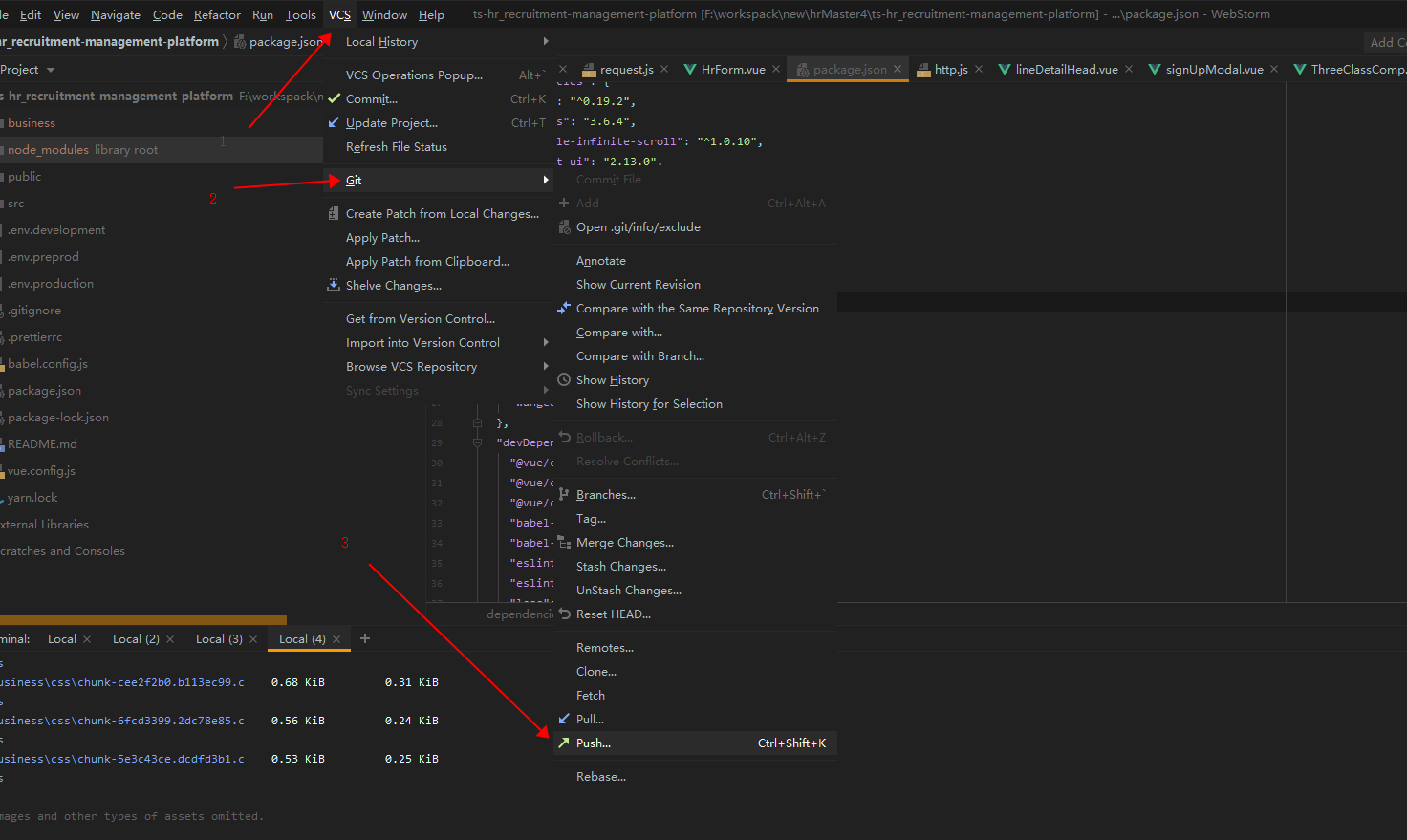 选择webstorm菜单栏(VCS –> 选择Git –>Push)
