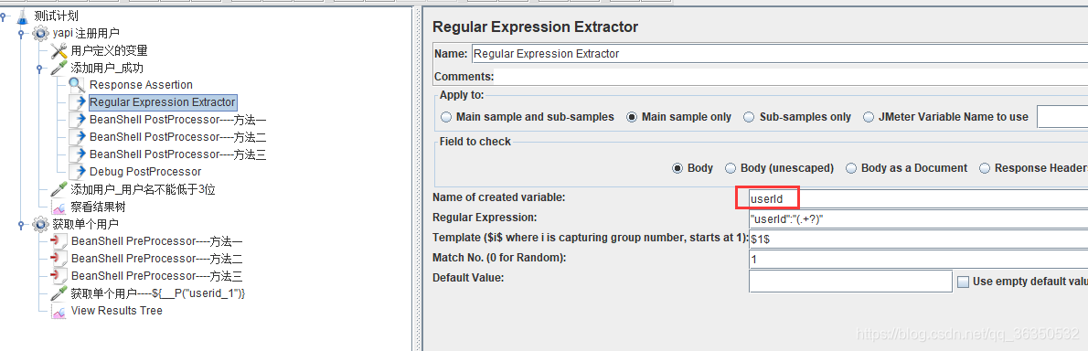 第二步,把获取的值进行设值。主要是为了在其他线程组中可以获取到该参数值。