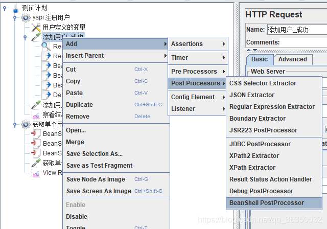 新建BeanShell后置处理器:BeanShell PostProcessor