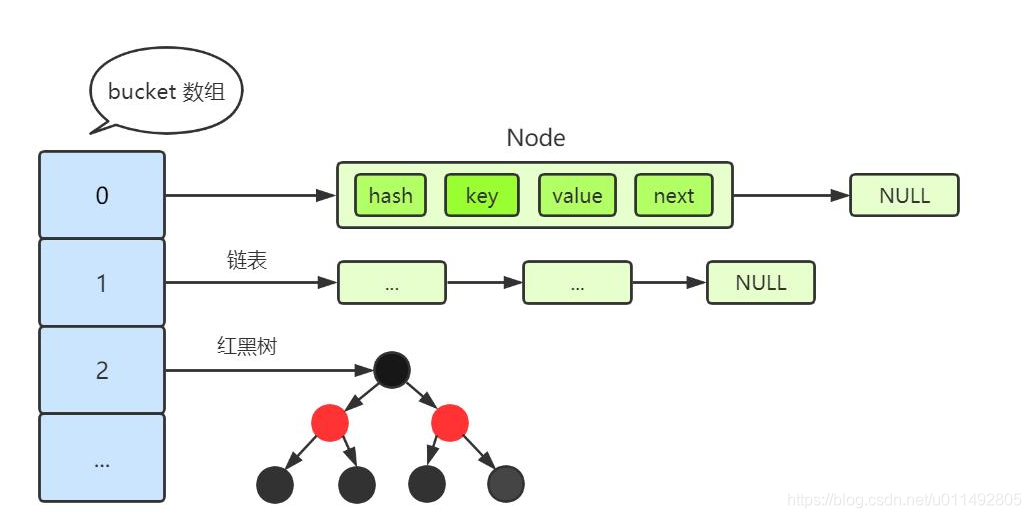 在JDK1.8时更新为 (数组+链表+红黑树)