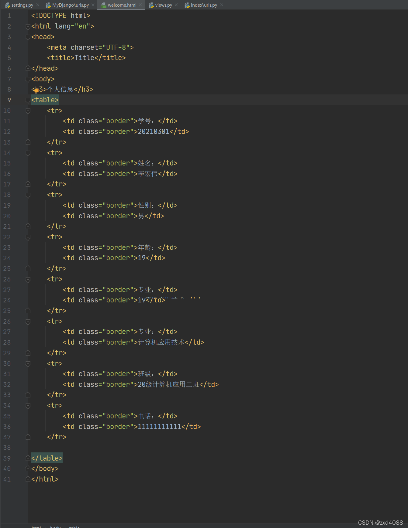 创建项目templates文件夹并创建一个名为index的HTML文件