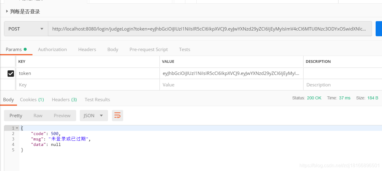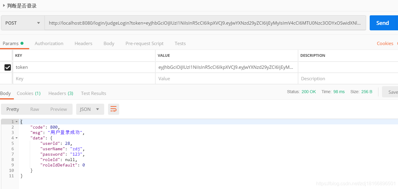 再次判断登录,将登录生成的token作为参数传递给判断登录接口