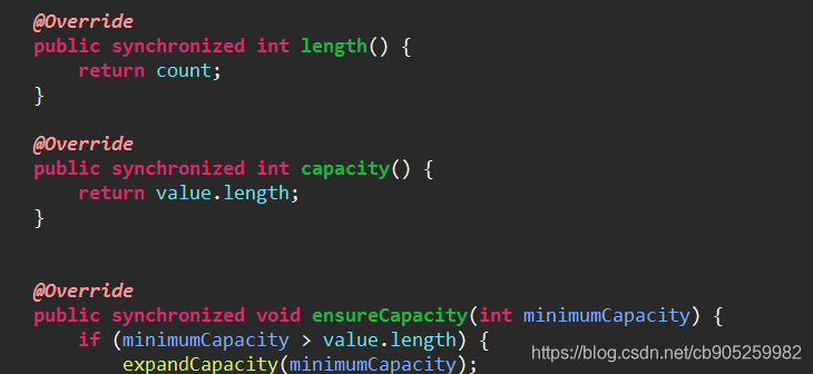 虽然只截取了部分重写的方法但是可以看到stringbuilder并没有在线程方面做处理;