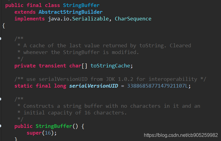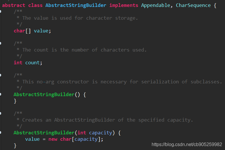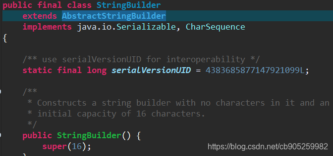 同stringbuffer一样继承自AbstractStringBuilder;是serializable和charSequence类的实现类;所以他们的方法是 一样的,实现上