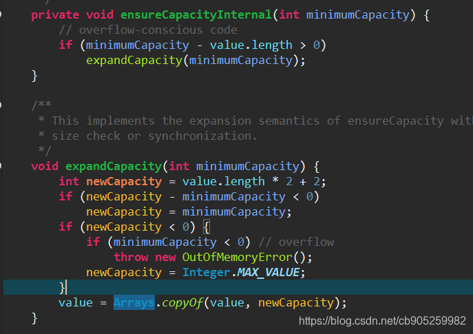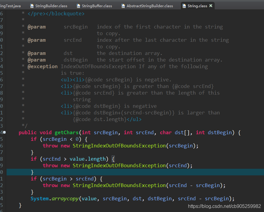 明显调用了arraycopy方法整个复制过去到value中 ( value是之前的字节数组)