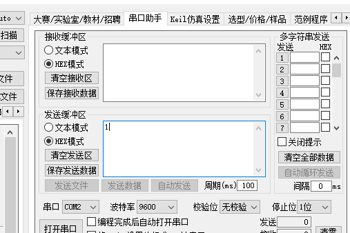 题目:通过串口助手发送1,蜂鸣器以400ms频率发声;发送2,以200ms频率发声;发送3,以100ms频率发声;发送4,蜂鸣器不发声。