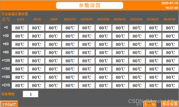 触摸屏上电进入工作状态后,默认即为“实时温度”界面,再此界面可观察到各节点采集的温度值。
