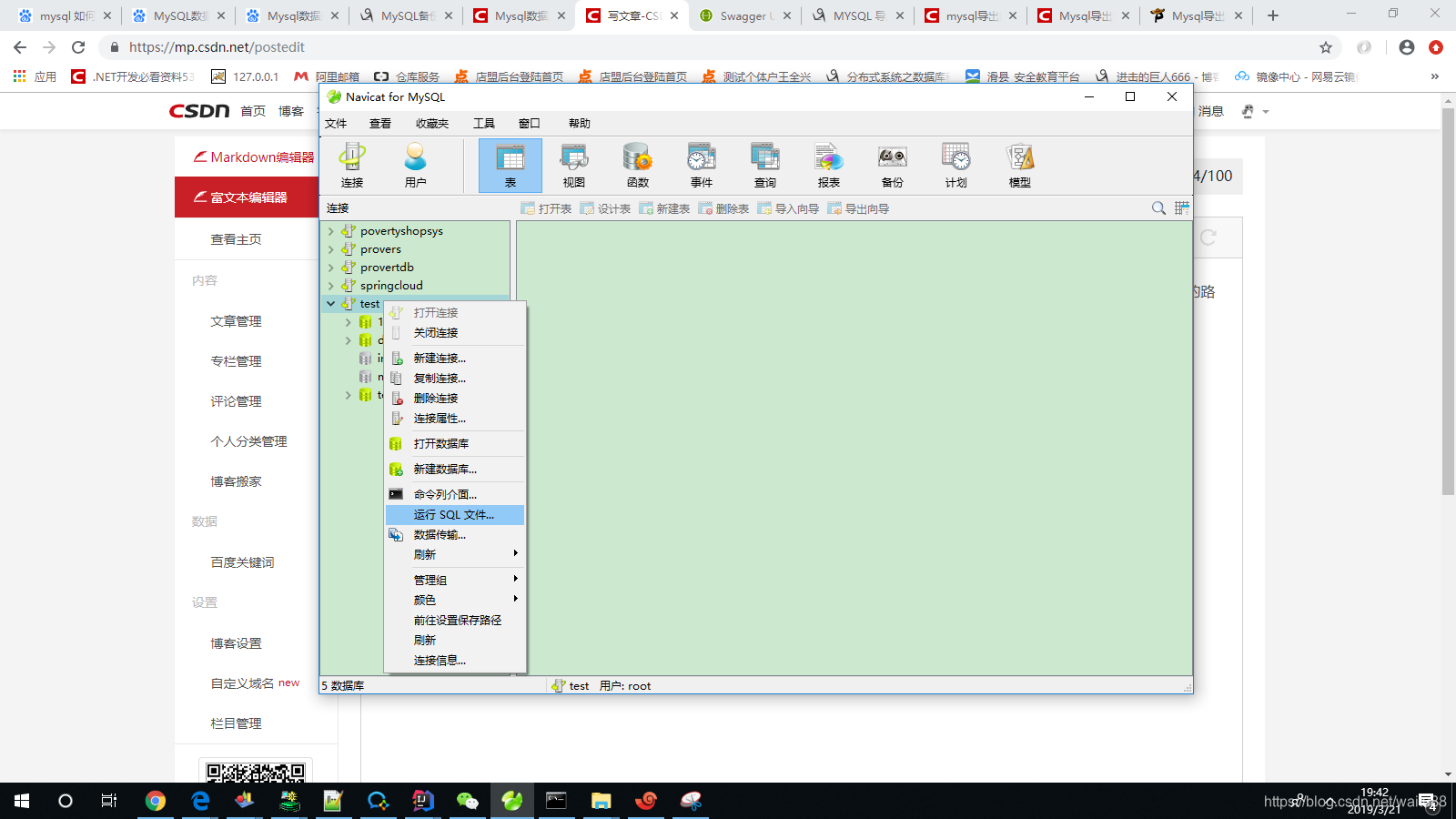 数据库连接上右击运行sql文件,选择刚才的文件就会就一个 名字为 【要导出的数据库名字】的数据库,并且数据都在,