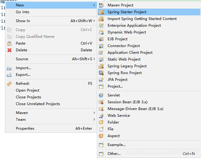 1、eclipse-new–》Spring Starter Project,或者new–》other…..–》搜索spring–》Spring Starter Project
