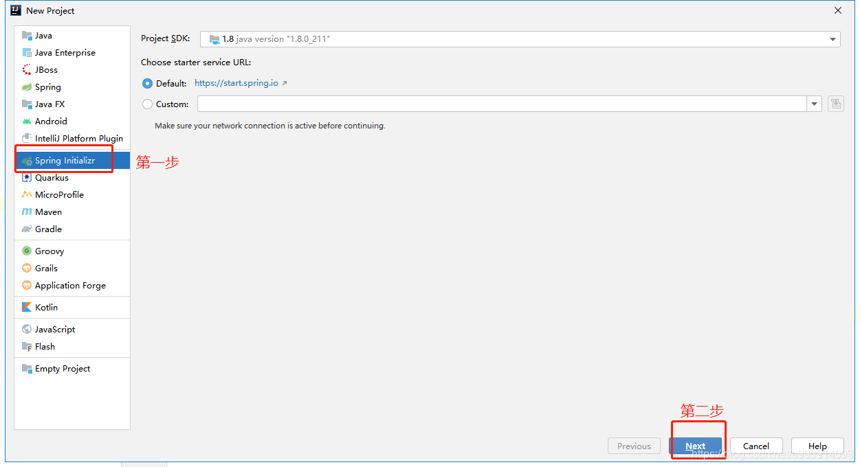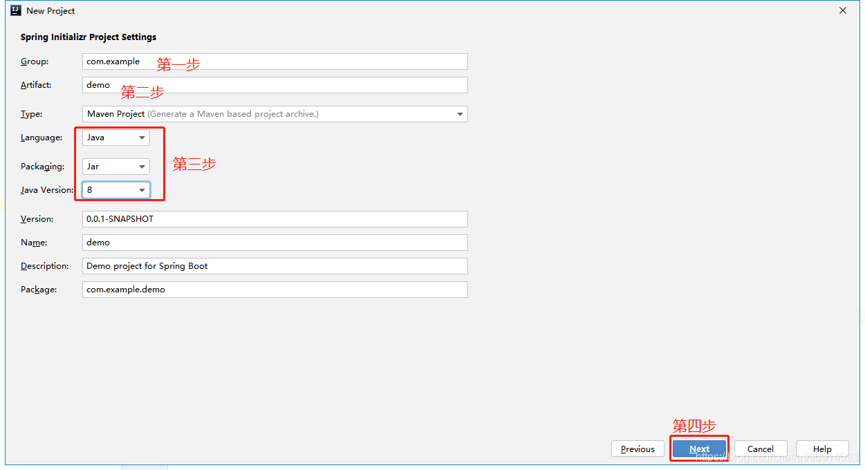 2、选择jdk版本(我的是jdk1.8),打包类型(jar),语言(java)