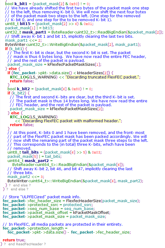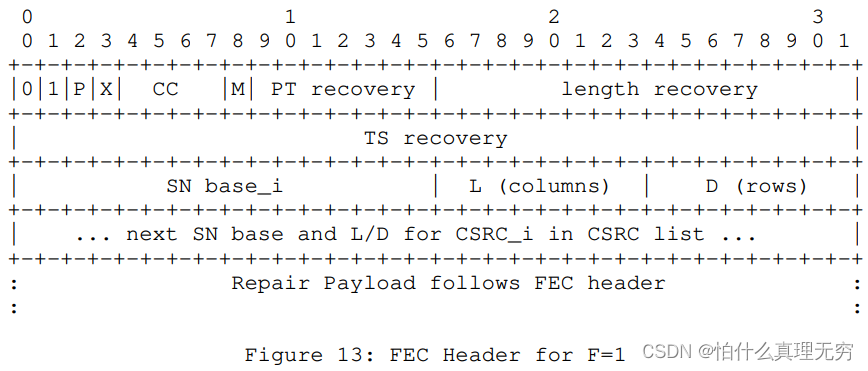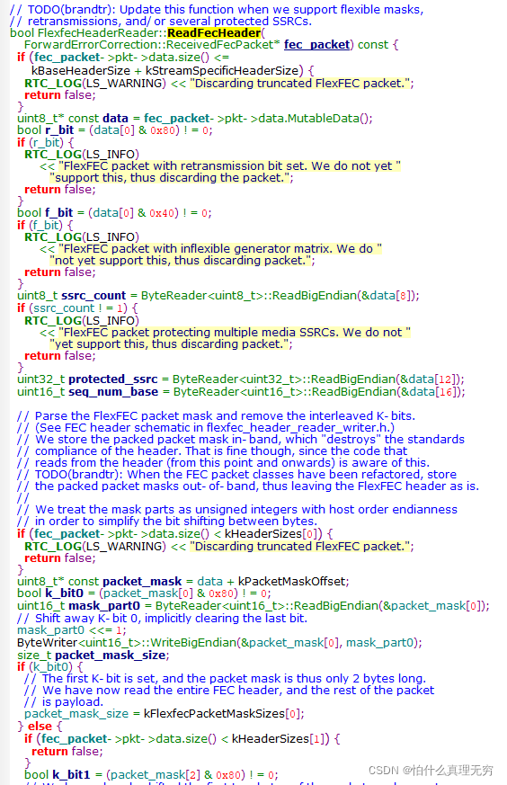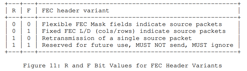 2.4 根据代码,目前webrtc 支持R=0 and F=0(Flexible FEC Mask fields indicate source packets)的封装和解析