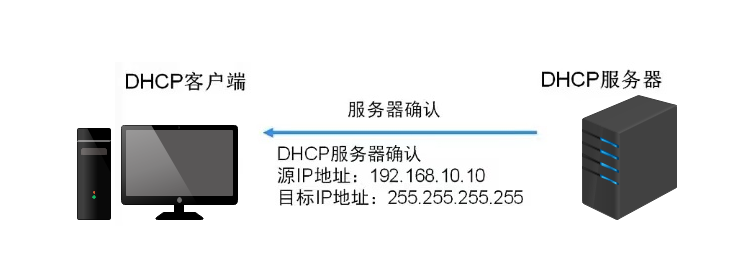 - DHCP服务器接收到DHCP Request消息后,以DHCP ACK消息的形式向客户机广播成功确认,该消息包含有IP地址的有效租约和其他可配置的信息