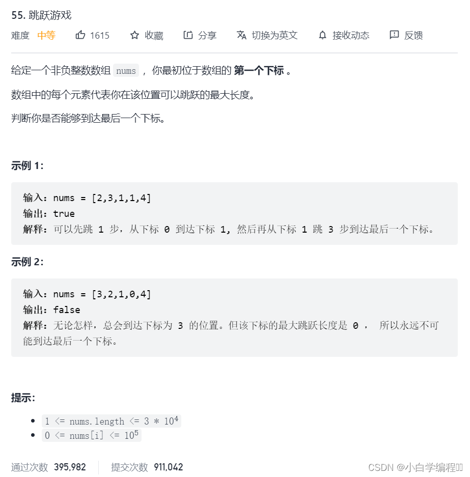 2.遍历整个数组如果j《i就表示到达不了终点