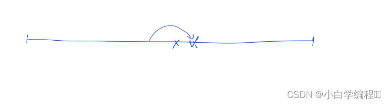 如图所示,我们较后面的一个点是由前面一个点跳过来的,如果他能跳到较后的点,那么它少跳一点也能跳到前面的一个点,所以我们能跳的点,一定是连续的一段