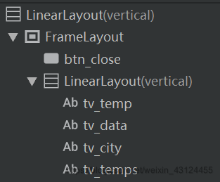 由于本程序功能比较简单,界面切换少,所用到的控件等都很简单,主要使用Palette进行操作布局,采用LinearLayout布局,orientation属性为vertical,布局文件如下: