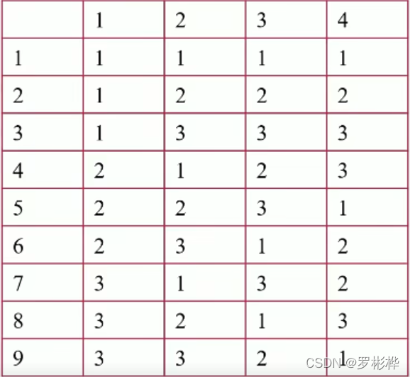 - 例如:L4(2^3),它表示需做4次实验,最多可观察3个因素,每个因素均为2水平