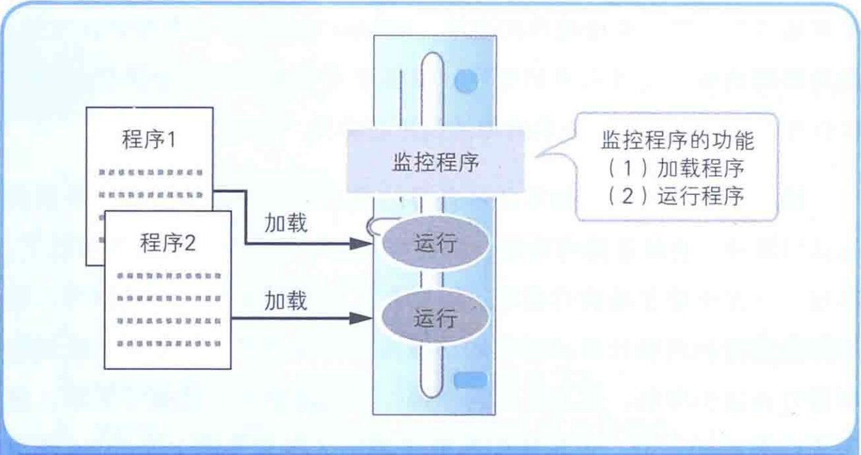 通过事先启动监控程序,程序员就可以根据需要将各种程序加载到内存中运行。