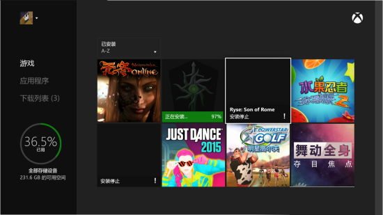 在新版本的系统更新之后,国行版XboxOne主机已可以正常的识别和安装海外版游戏光盘,并且能够成功进入游戏。当海外版游戏有更新补丁时,国行主机还可以进行游戏补丁的下载更新。我们测试了《龙腾世纪:审判》,《Just Dance2015》皆顺利安装和完成更新。《丧尸围城3》和《罗马之子》因为更新补丁过于庞大所以没有选择安装,但游戏光盘是完全能够被国行机识别的。