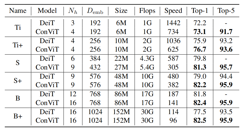 ConViT以DeiT为基础,使用ViT的超参数优化版本,地址