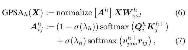 所以为了避免这个问题,GPSA 是在softmax之后再将内容和位置信息相加,它们的相对重要程度由一个可学习的门参数
