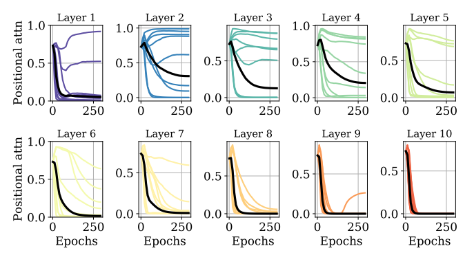 )(黑色),反映了对位置信息相对于内容的平均关注量,在整个训练过程中有所下的。 σ(