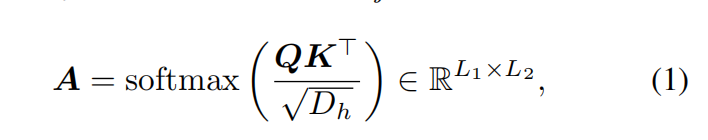 。K与Q使用內积,它们內积的结果就是一个注意力矩阵,(ij)量化了Qi与Kj在语义上的相关性,这就是自注意力操作,也是transformer的核心,公式如下: