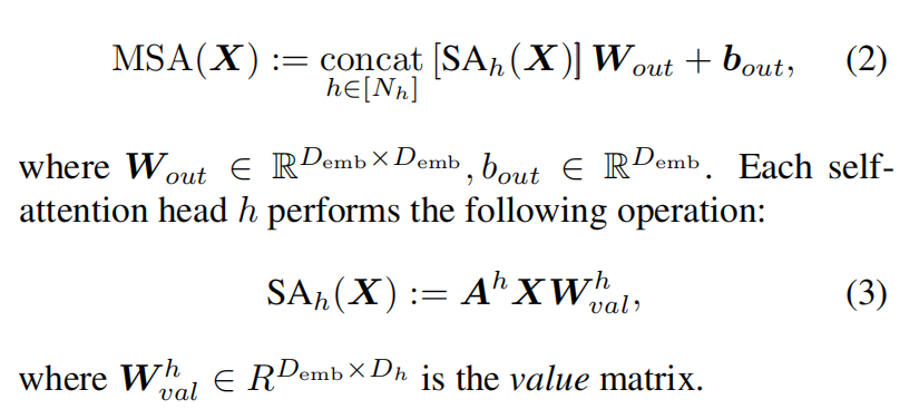 但是在公式1中,这种自注意力是位置无关的,意思是说patches里面它们是彼此不知道位置关系的。为了将位置信息融入注意力里面,已经有研究人员使用了几种方法。其中一种就是在进入SA层之前的embedding操作中add位置信息,就是VIT中使用的方法。另一种方法就是使用位置自注意力(