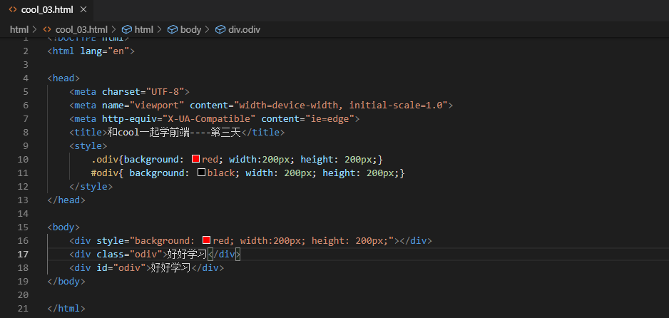给所有class属性为odiv的标签加上这个样式,这个就是上面提到的给标签绑定class属性,一个标签可以绑定多个class,例如