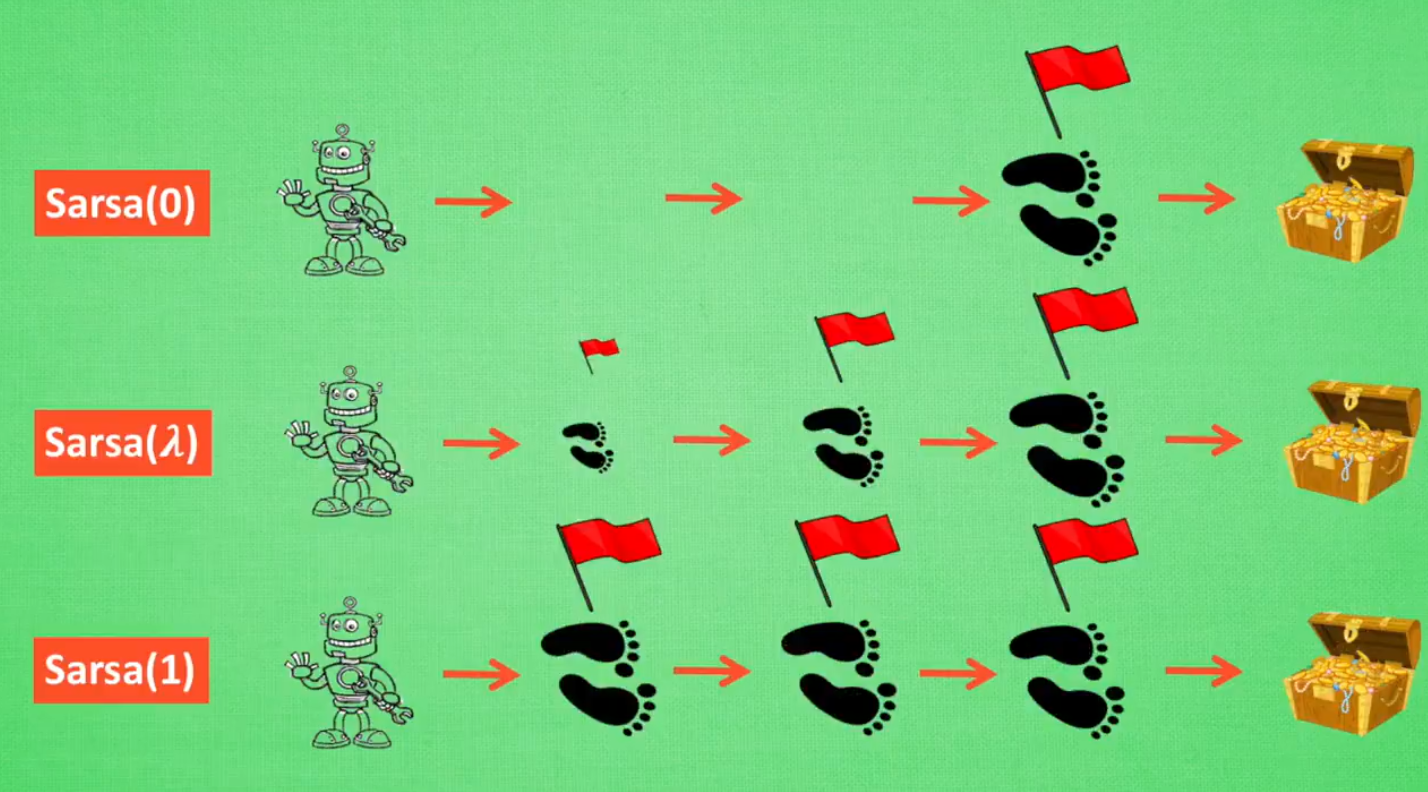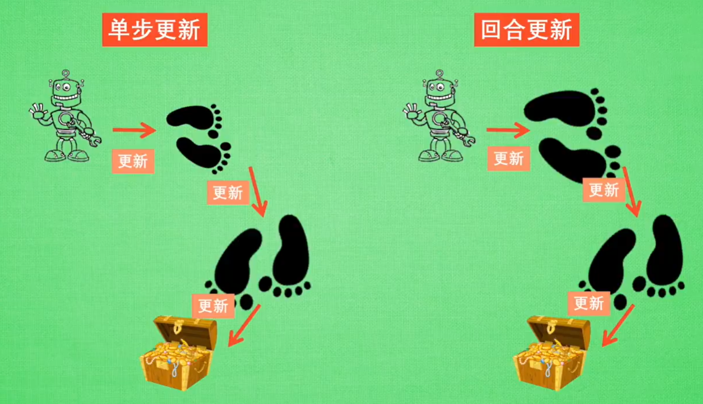 如果该行为有n步,回个结束再更新所有的n步的行为准则Q-table,则称之为