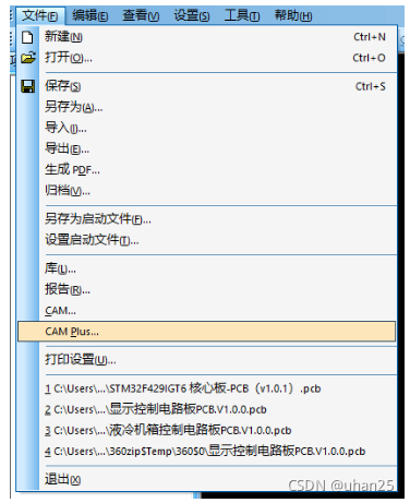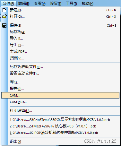 菜单栏【文件】→【CAM】。