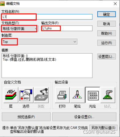 :顶层线路层,如图进行设置。