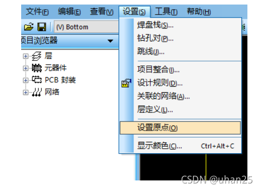 执行菜单命令【设置】→【设置原点】,将原点设置在板框左下角附近。
