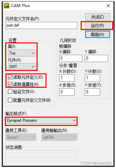 方法二:菜单栏【文件】→【CAM Plus】,对话框参数设置如下。