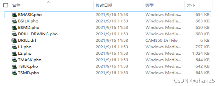 选择【是】,即生成Gerber文件,可以在目录下看到已生成的文件,再将生成的.rep文件全部删除,保留 .pho 和 .drl 文件。