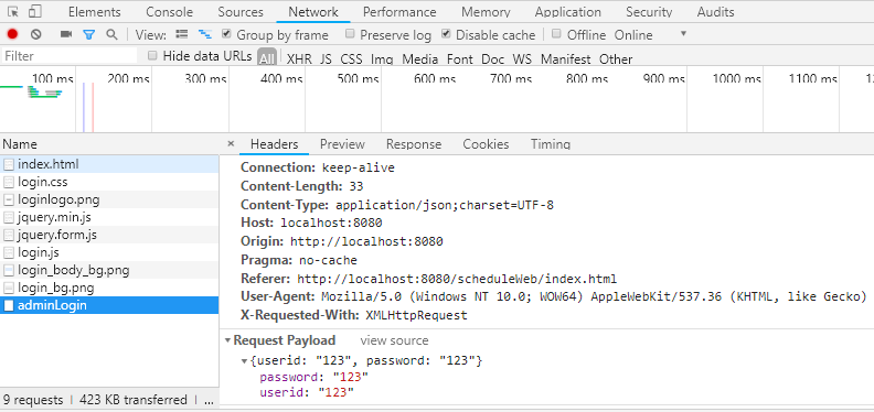 1.前端js代码传递的数据中,属性名称与后端Java类(此处类名称为Admin)中变量不一致(如下图加引号的userid,password全称以及大小写和Admin类中需一致);
