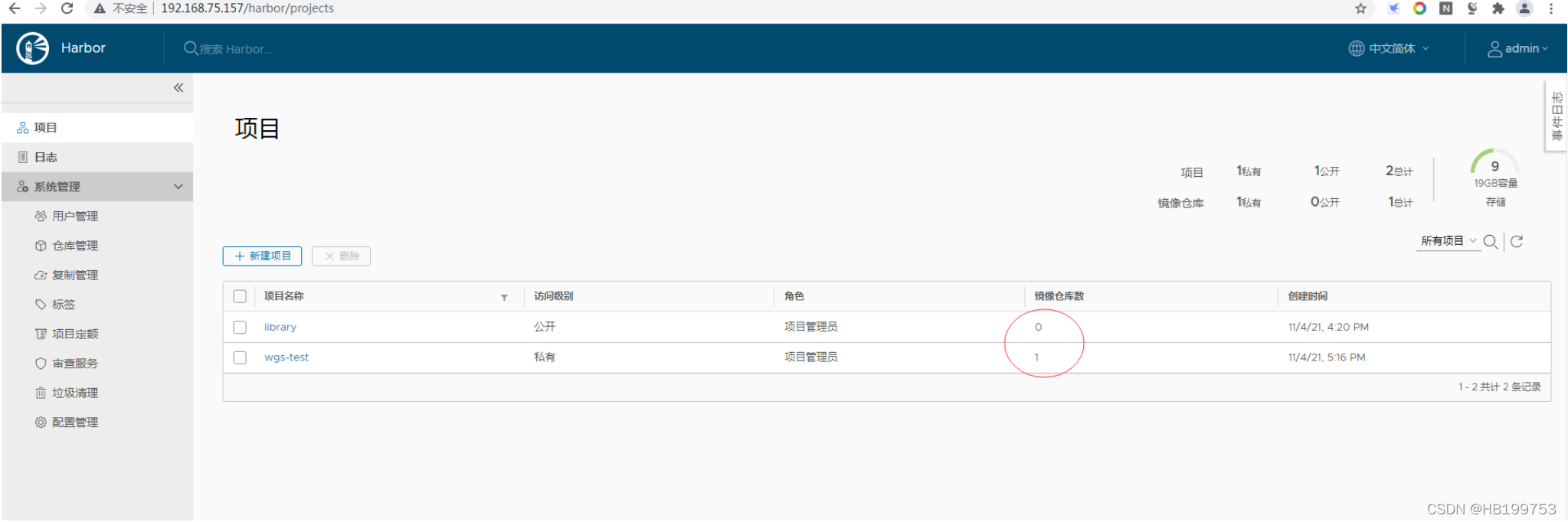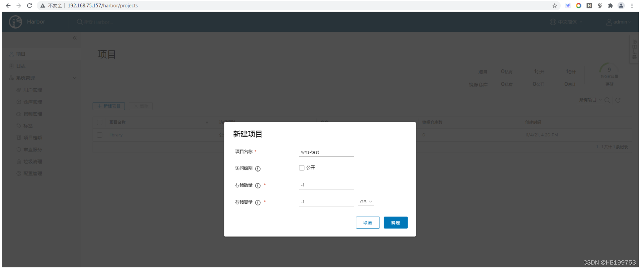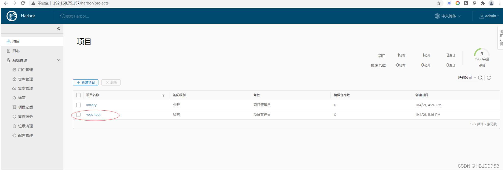 2、创建harbor项目