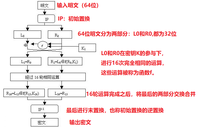 明文和密文分组长度为64Bit,密钥长度56bit(密钥空间2^56)
