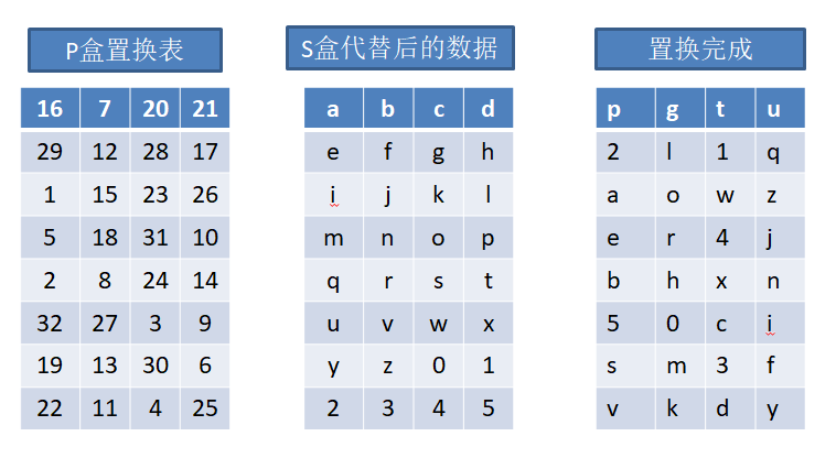 d. 再进行P盒置换,生成32位的数据