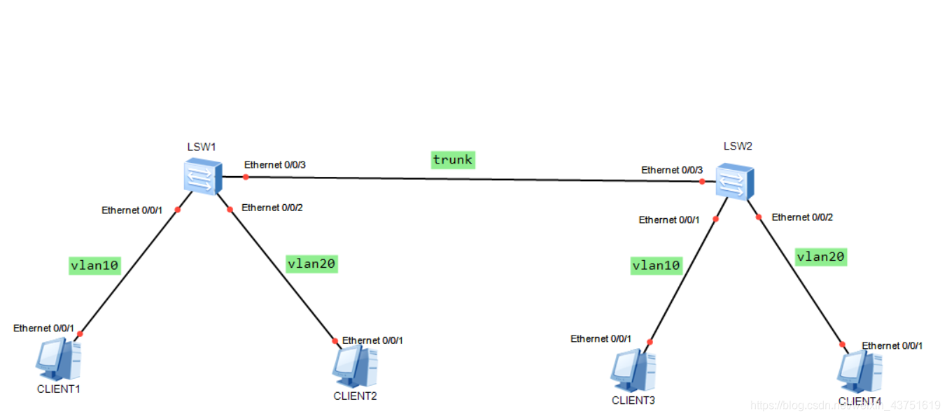 因为在trunk链路上交换机会启用802.1q协议,而802.1q协议导致交换机将报文从