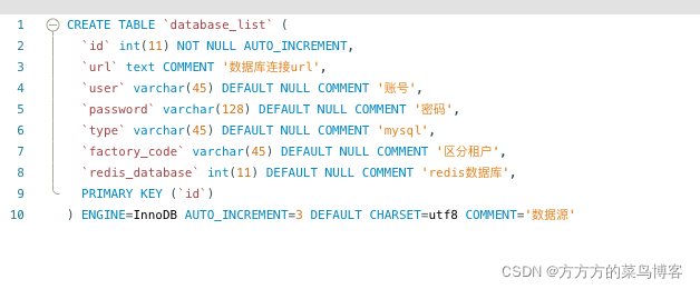 配置文件中配置默认的数据源datasource,默认数据源中需要建立一张各租户的数据源表: