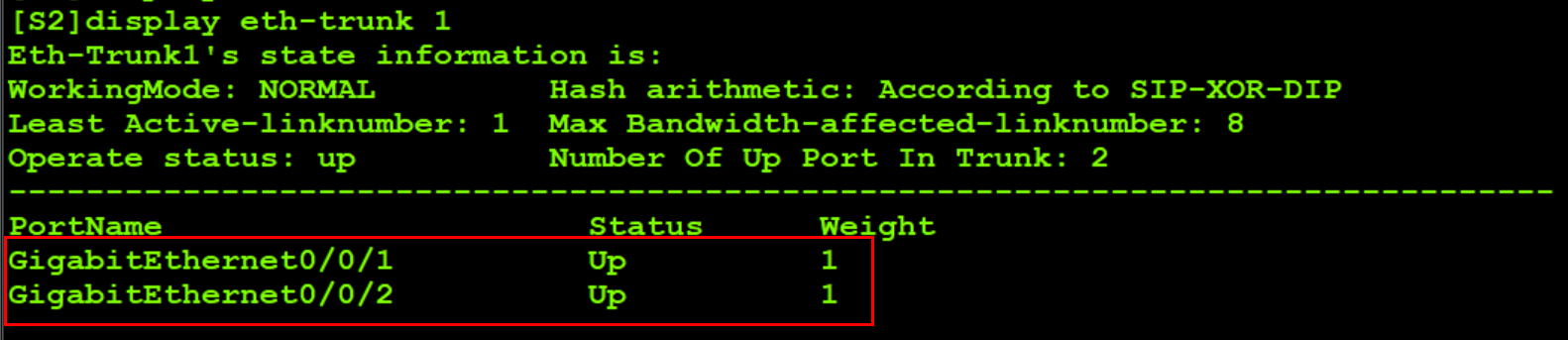 [S1-GigabitEthernet0/0/1]eth-trunk 1
